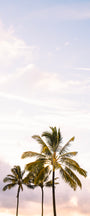 Sunlit palms along the island of Kauai. Bathed in golden sunlight, a cluster of palm trees sways gently against Kauai’s serene sky.