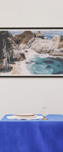 Close-up of the iconic Mcway Falls in Big Sur, California. Nestled within Julia Pfeiffer Burns State Park along California’s Big Sur coast, McWay Falls is an 80-foot tidefall that gracefully descends from granite cliffs directly into the Pacific Ocean.