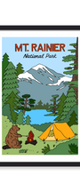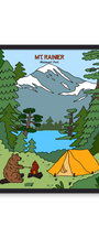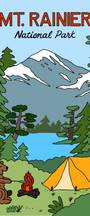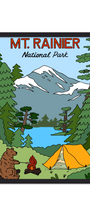 Campfires, starry skies, and a friendly forest visitor—our playful illustrated take on camping in Mount Rainier National Park, one of Washington’s most beloved national parks.
