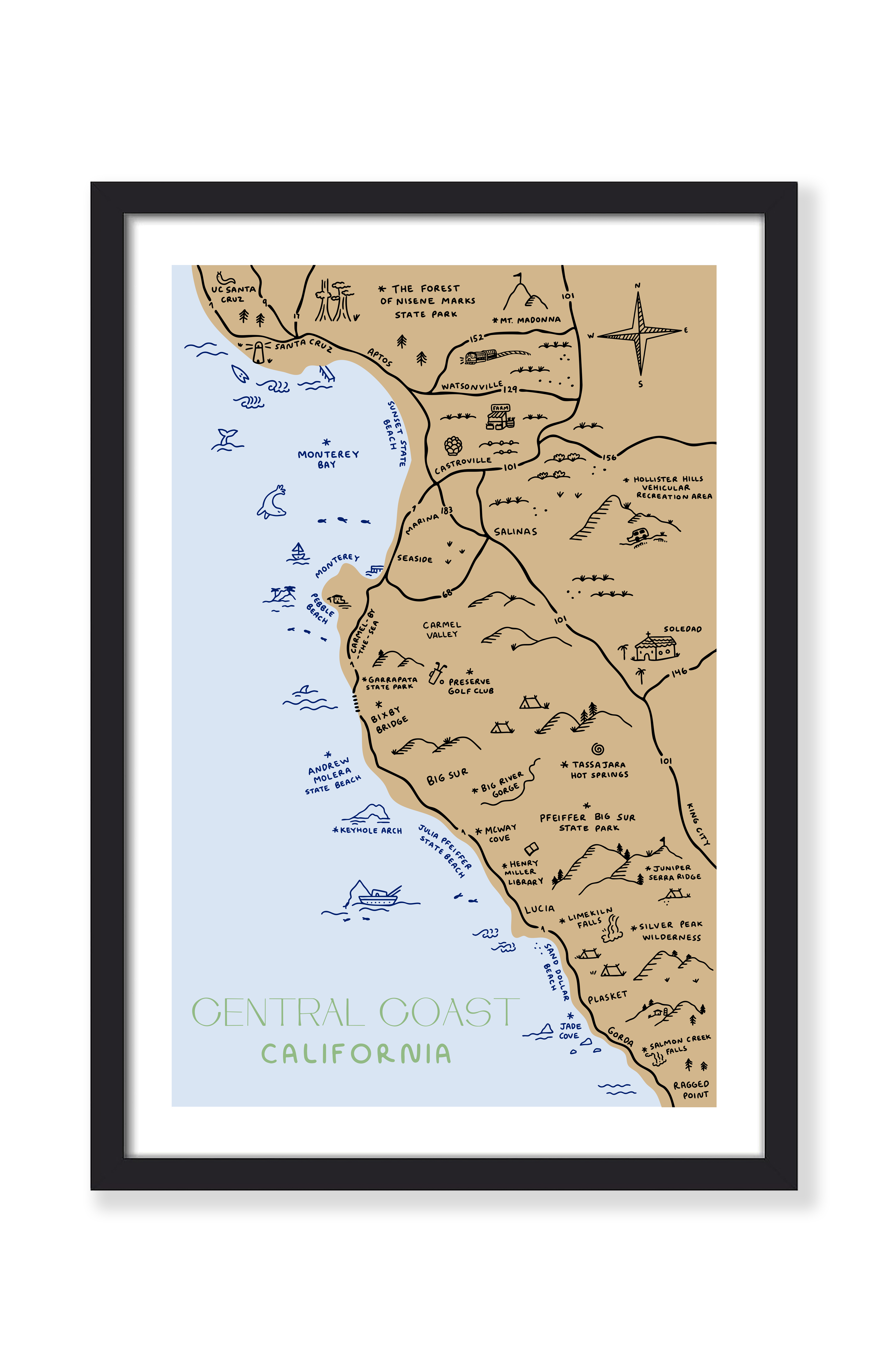 NORTH CENTRAL COAST MAP PRINT