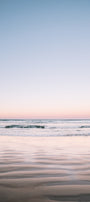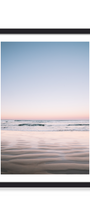 Early light reflects on the wet sand as waves gently hug the shoreline. With soft hues and curves, this photo softens the space around it, creating a peaceful ambiance.